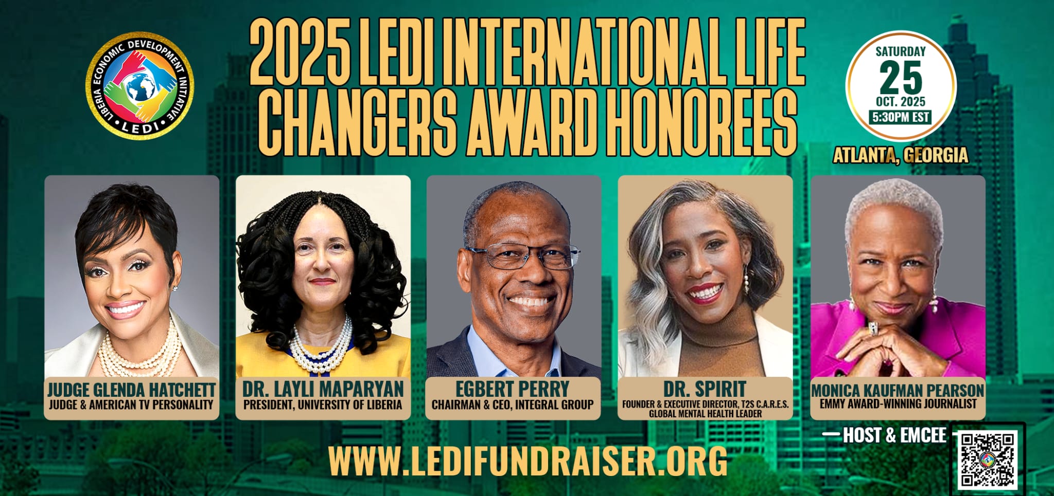 ATLANTA - ncarol.com -- Liberia Economic Development Initiative (LEDI) will host its milestone 10th Annual International Life Changers Awards & Fundraising Gala on Saturday, October 25, 2025, at 5:30 p.m. EST at the Marriott Gateway Hotel Atlanta Airport. This year's theme, "The Time Is Now," underscores LEDI's mission to reduce poverty and change lives through education and economic empowerment.